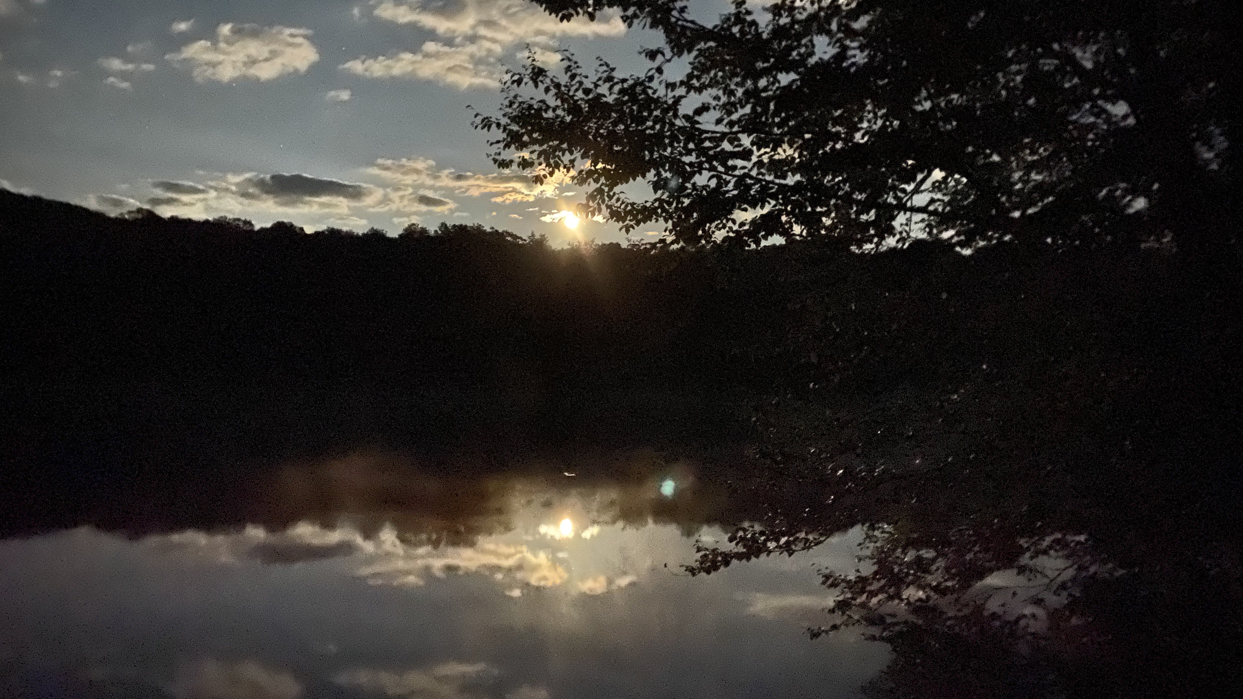 I, personally, enjoy the quietness of the nights when camping. While I’m a huge fan of the fire, there is nothing like being in the woods, far away from the noise, and the hustle and bustle of city/suburban life. The night mode in my new iPhone captured a particularly nice shot of the full moon coming up over the pond. It almost looked like daybreak.