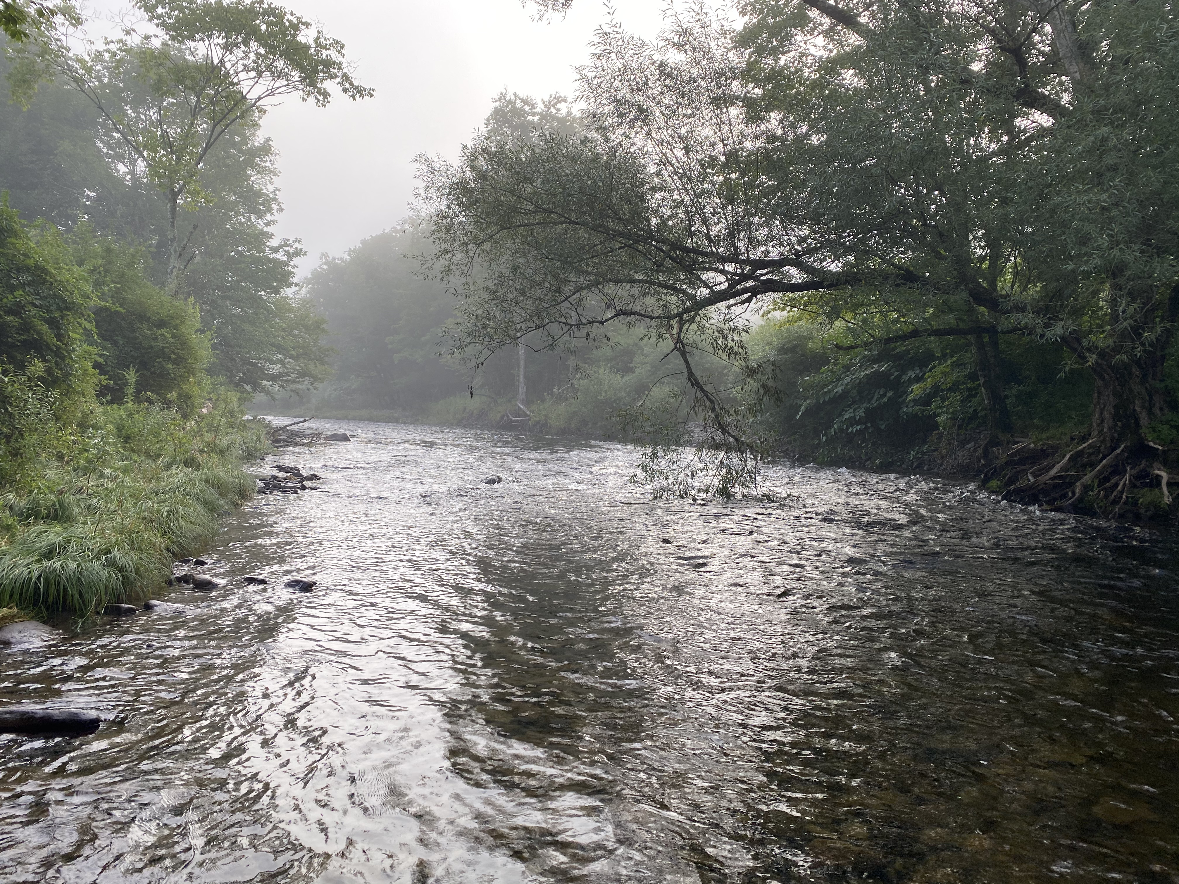 There were trout to be caught as well in the local rivers and, as usual, I was up at 4:30 nearly everyday ready to head out and spend a couple hours in search of that big fish. I didn’t do nearly as well as I had hoped, only landing a few little ones over the week, but time on the river is time well spent in my book. I did hook into a monster in a new spot, but I knew I was losing it as soon as I hooked it. Wasn’t sure it was on at first, but my rod jerked downward swiftly as it bolted upstream into the rapids and it broke off. Here is a shot of the lantern under my canopy a little before 5:00am while I’m getting ready, and a nice spot on the river.