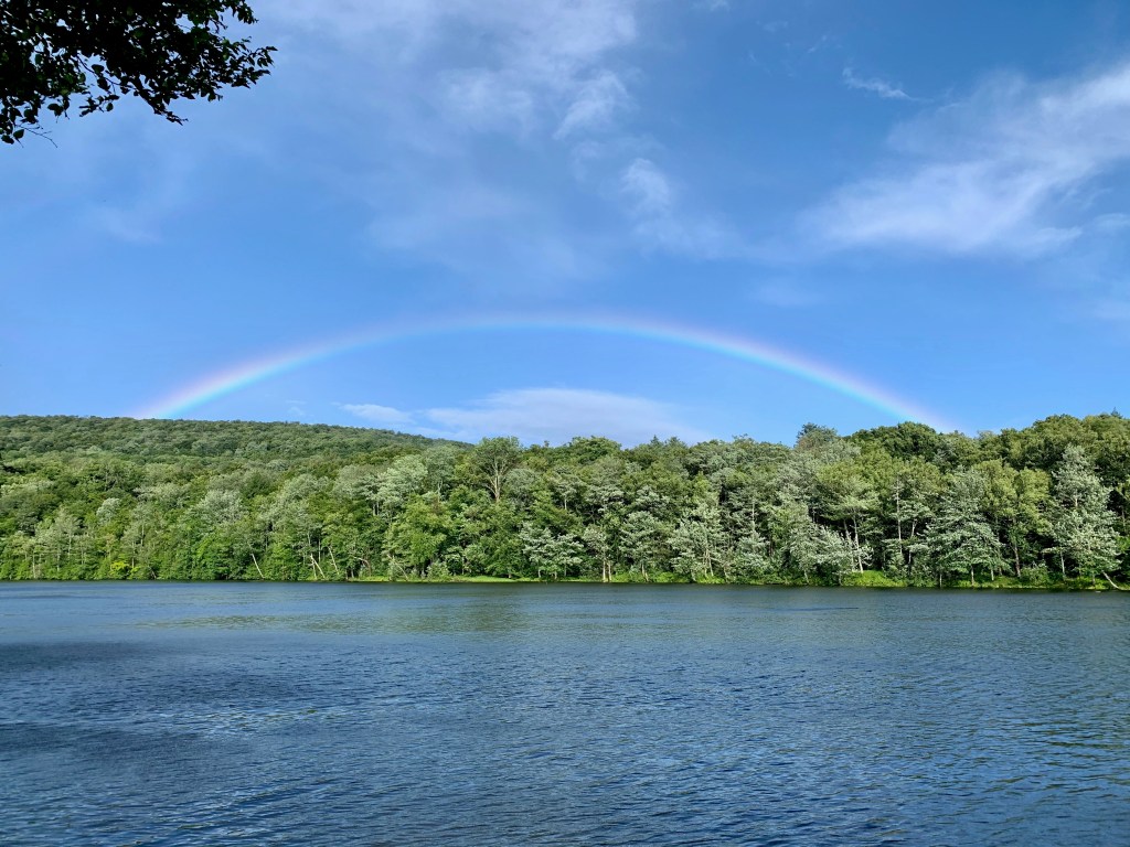 Right after the storm though, we had a few gifts. A visitor from the woods and a beautiful rainbow over the pond.