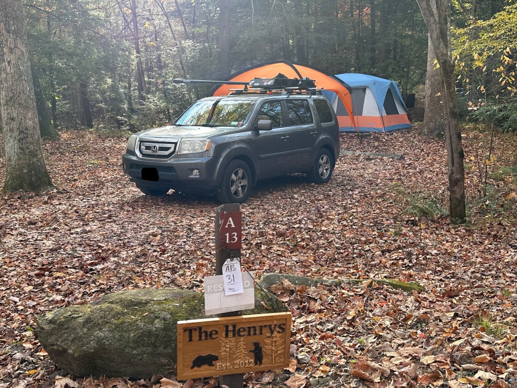 We have been on many camping trips together, annual trips with two other families whom we adore. These are very special trips for us. We have also been on many other trips as well, but this was the furthest we have traveled, a twelve-hour drive from our home in Westchester County, New York. We came prepared for the dramatic shift in weather predicted, and Mother Nature did not disappoint. A high of 80+ degrees on Saturday and Sunday with the lows around 60, to a rainy low of 38 on Monday night. This is how the weekend would end.