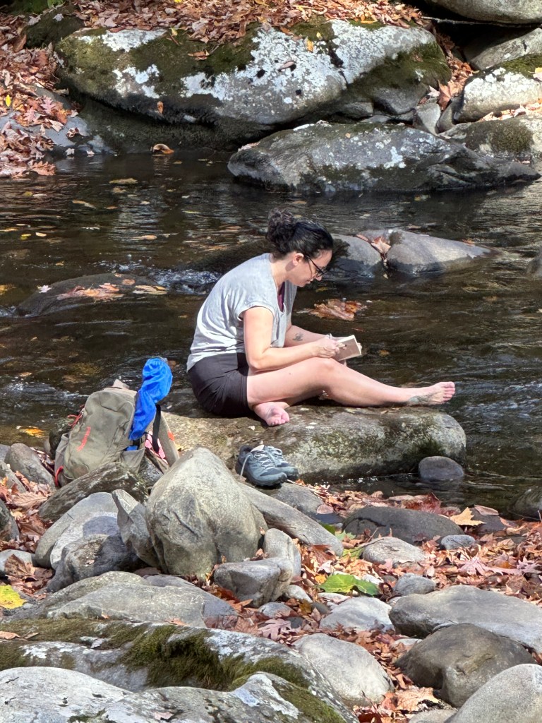 The plan for Sunday was to hike and fish! Michelle would hike up the Little River trail, just a short walk above the campground, as I fished my way up the river. We would meet up after a couple miles and share the pictures we each took. I don’t think we made it a mile. Michelle got lost in the beauty of the forest, of the river. I found her a couple hours later sitting on a rock in the river, barefoot, reading a book. But she has an amazing eye for beauty. Many of the photos featured in this post were taken by her. But this one is mine, this is how I found her…